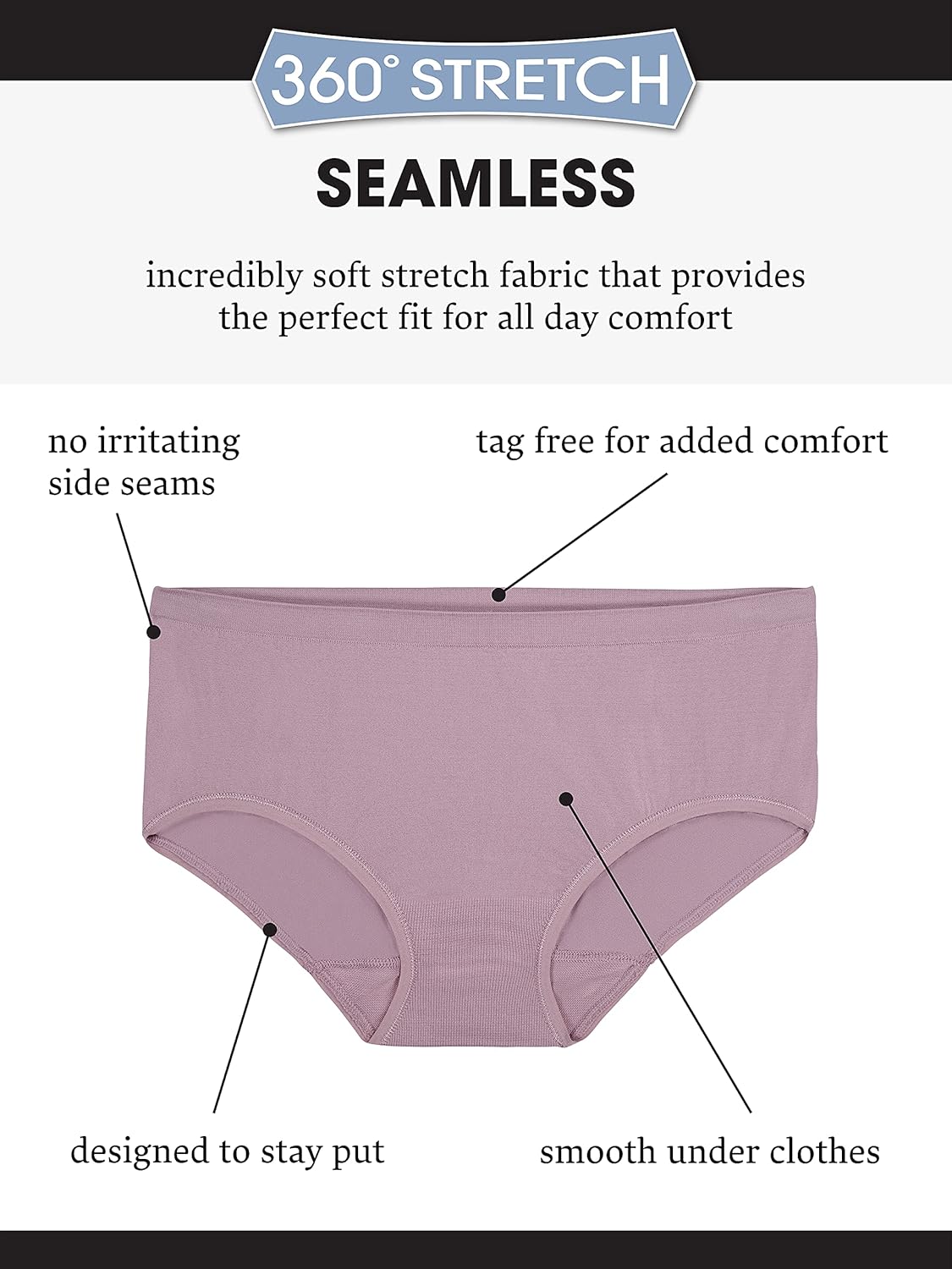 Fruit of the Loom Women’s No Show Seamless Underwear, Amazing Stretch & No Panty Lines, Available in Plus Size