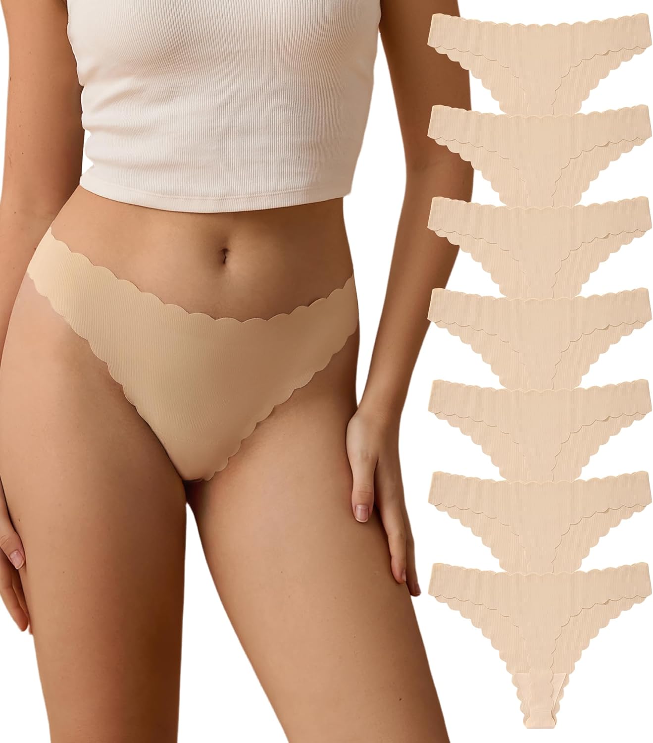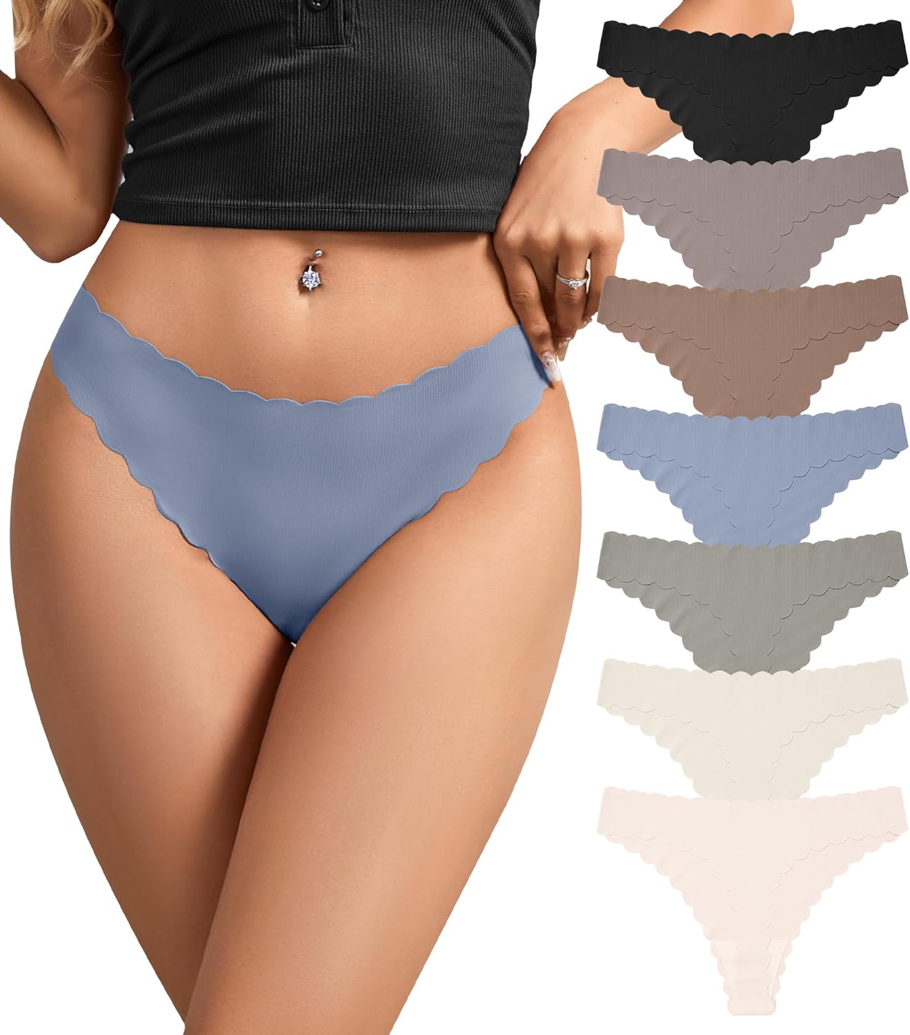 SHARICCA Womens Seamless Thongs No Show Underwear Soft Ribbed Invisible Panties Wave Edge Multi Pack