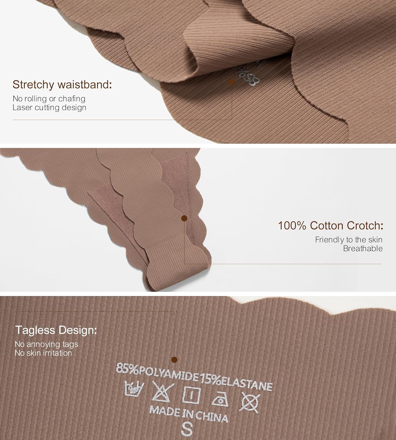 SHARICCA Womens Seamless Thongs No Show Underwear Soft Ribbed Invisible Panties Wave Edge Multi Pack quantity